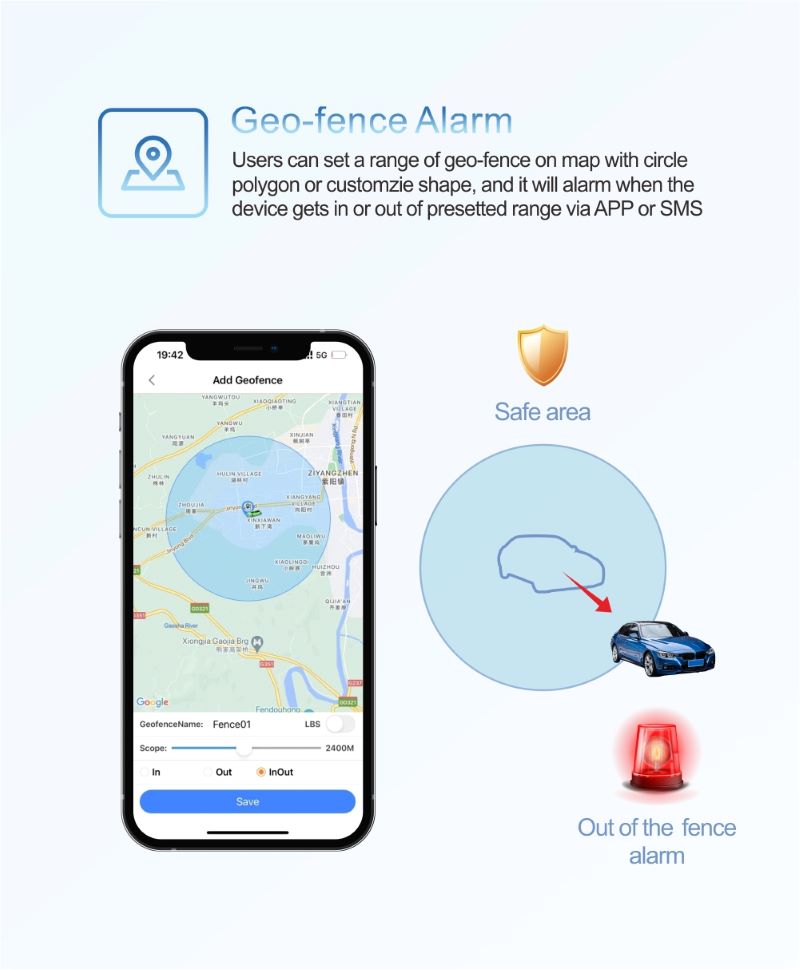 ◇ Vibration alarm,Geo-fence,Overspeed alarm