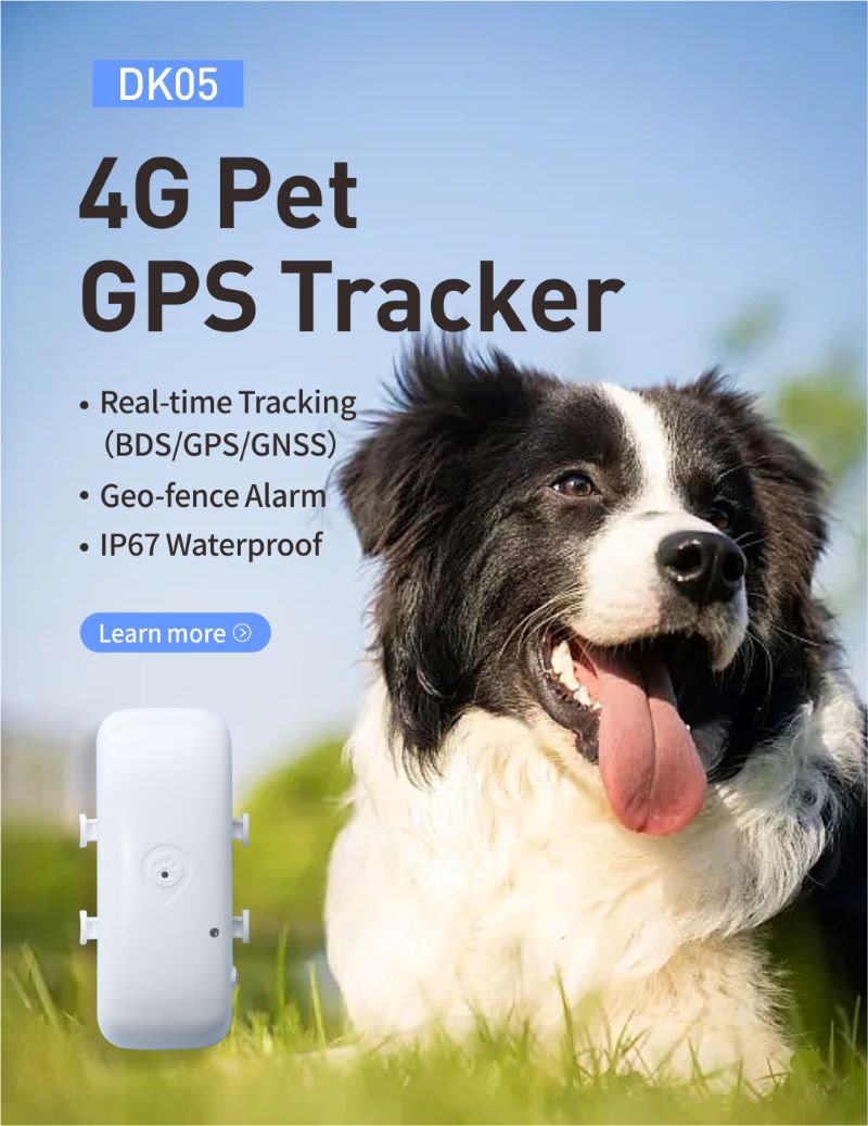 DK05 is a smart pet gps tracker,and it supports 4G+2G network.
